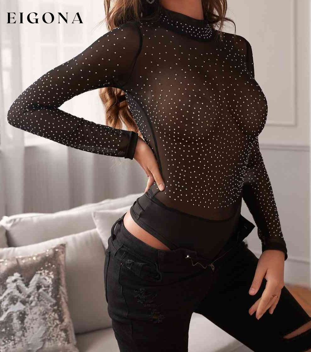 Rhinestone Mock Neck Long Sleeve Bodysuit