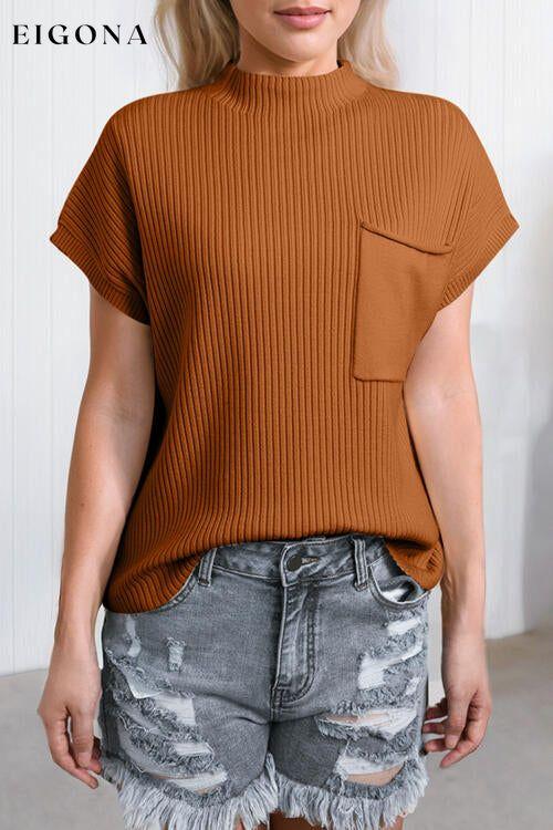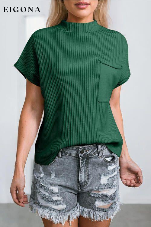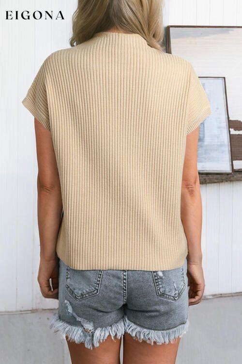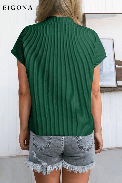 Ribbed Mock Neck Short Sleeve Knit Top