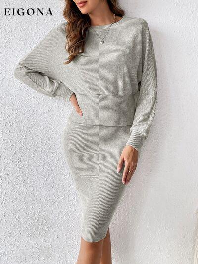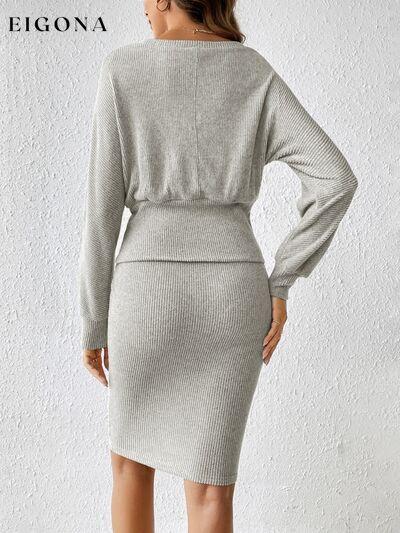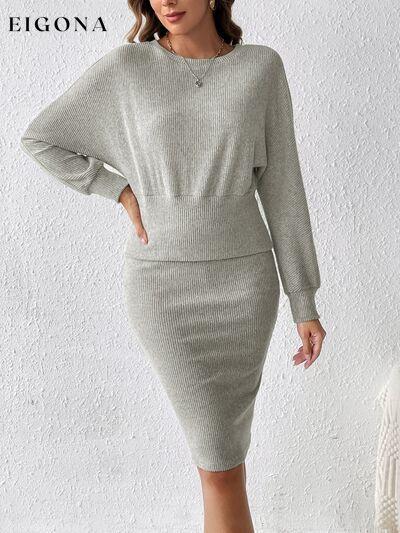 Ribbed Round Neck Top and Skirt Set, 2 Piece Sweater and Skirt Set