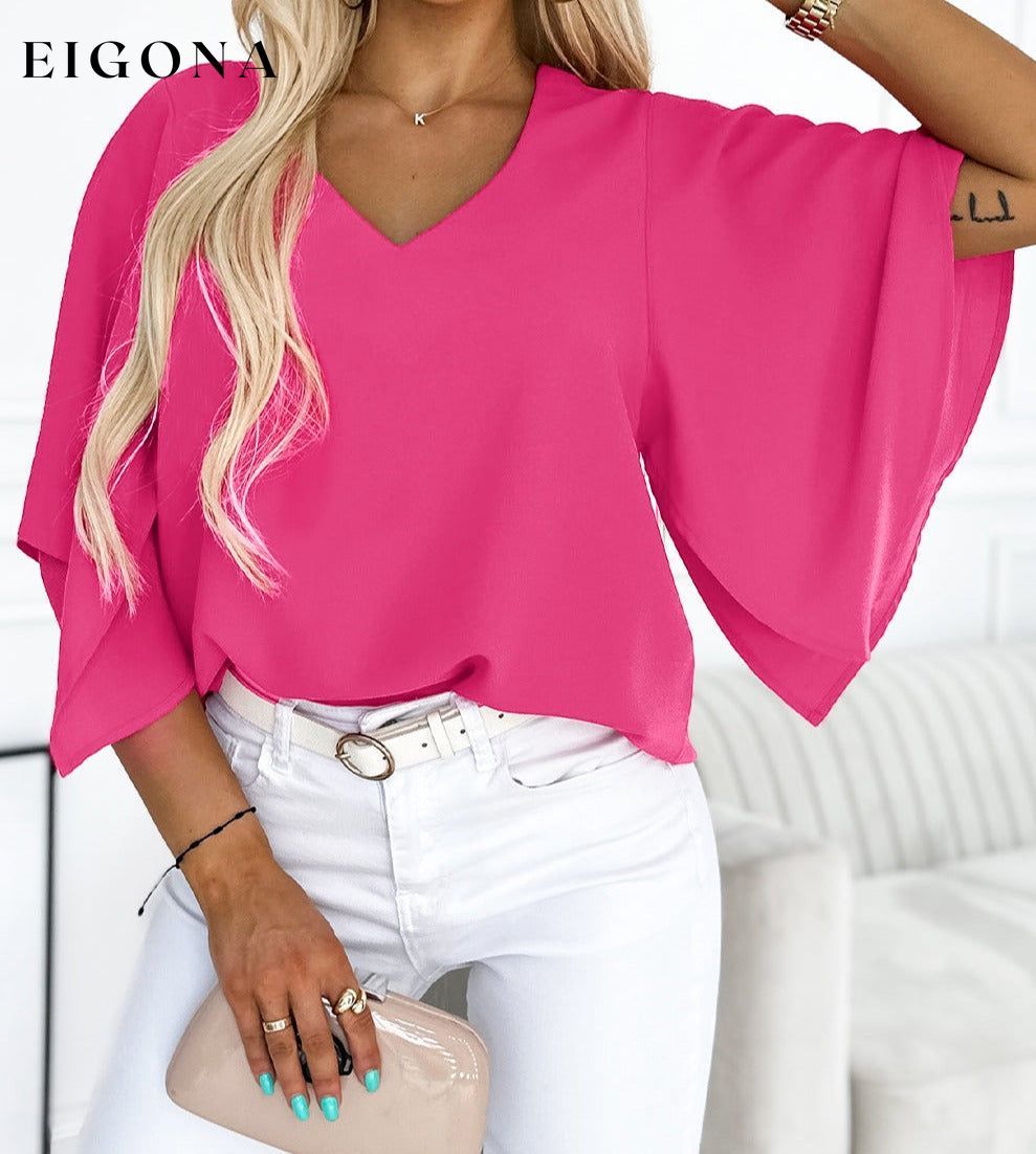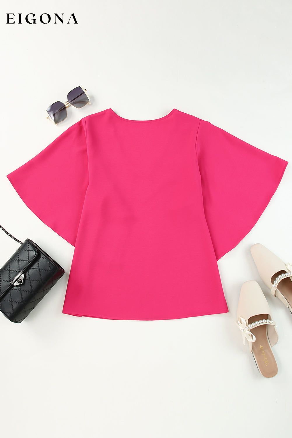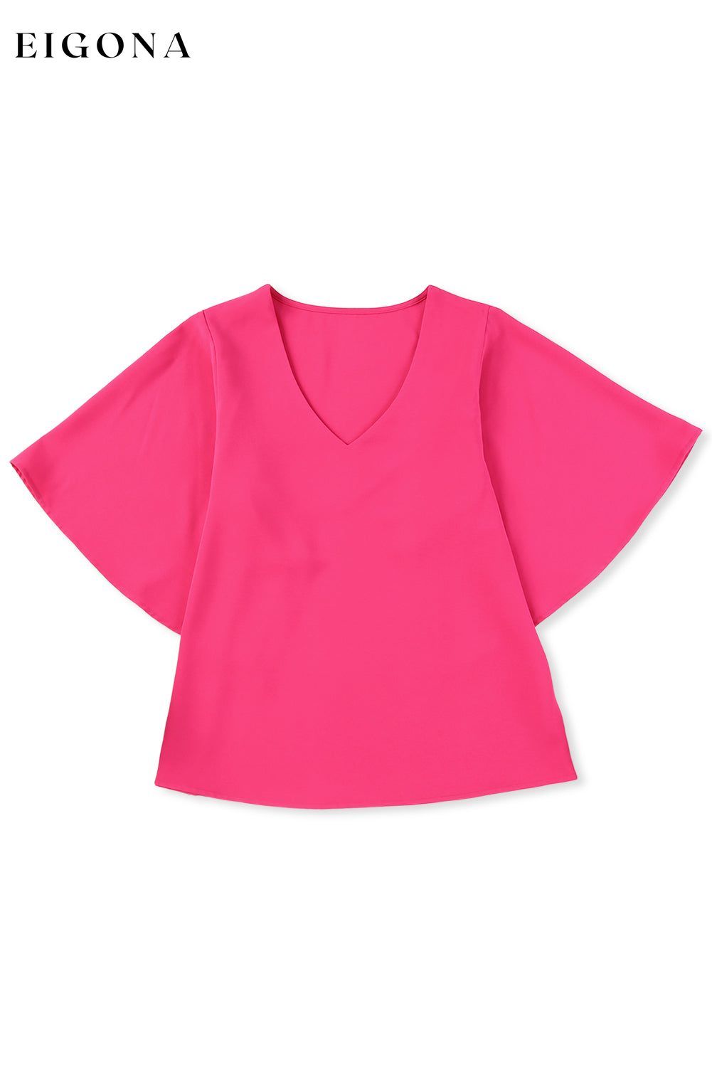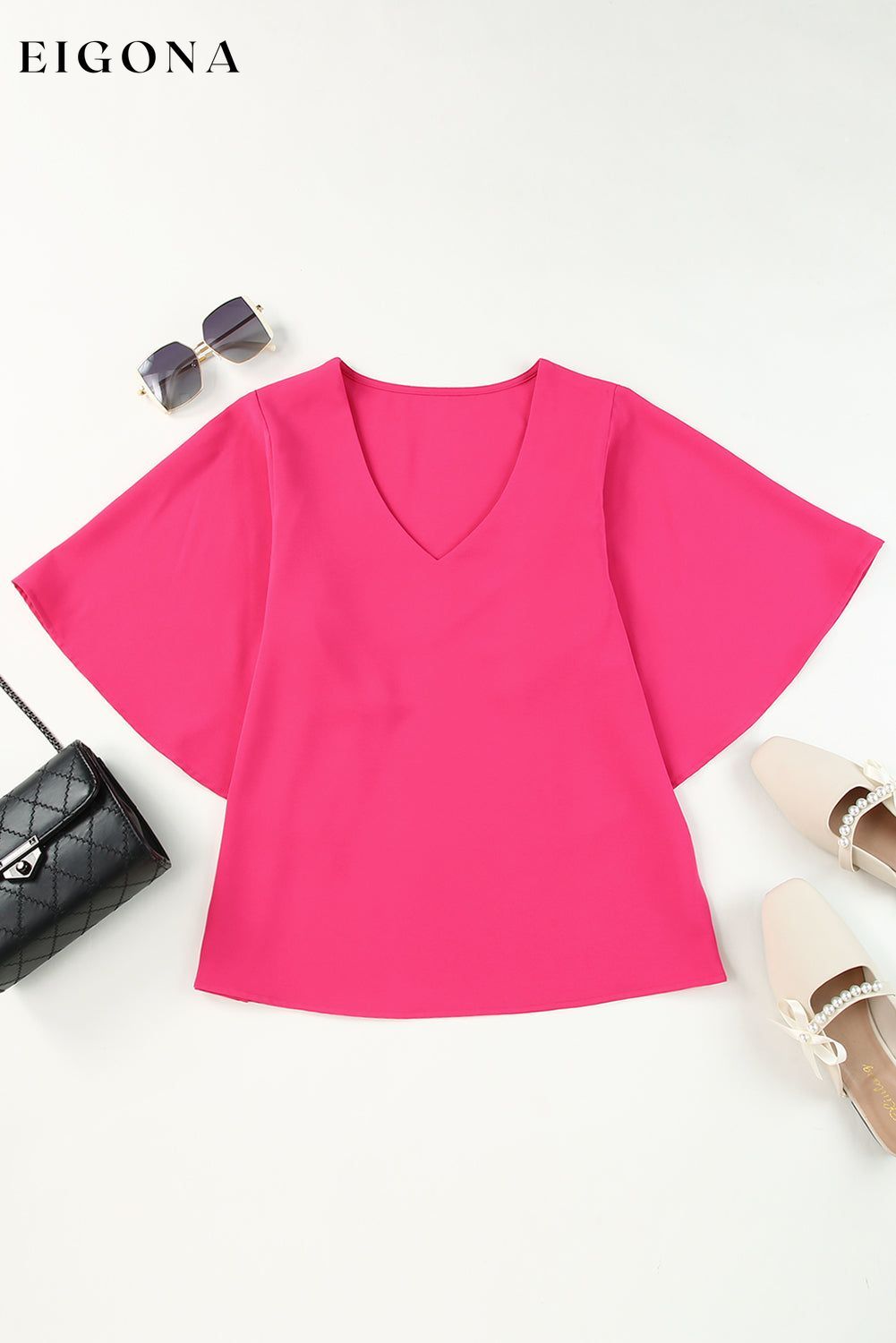 Rose Plain Flounce Bell Sleeve V Neck Blouse