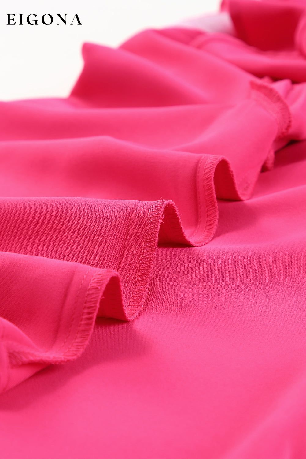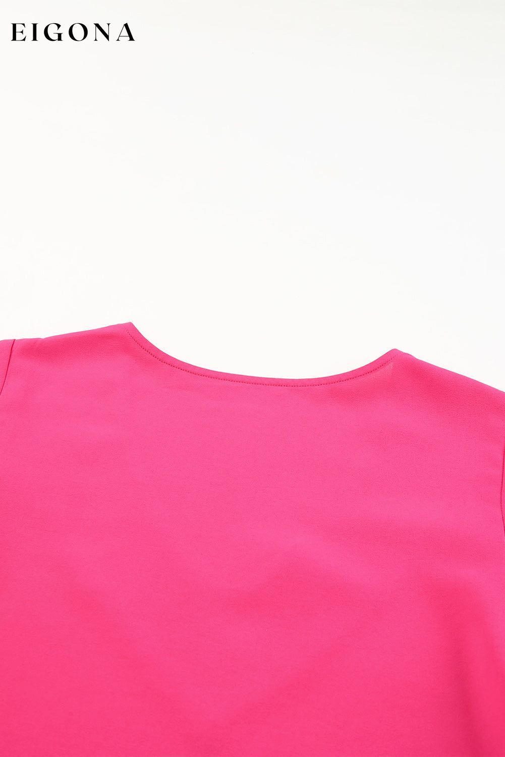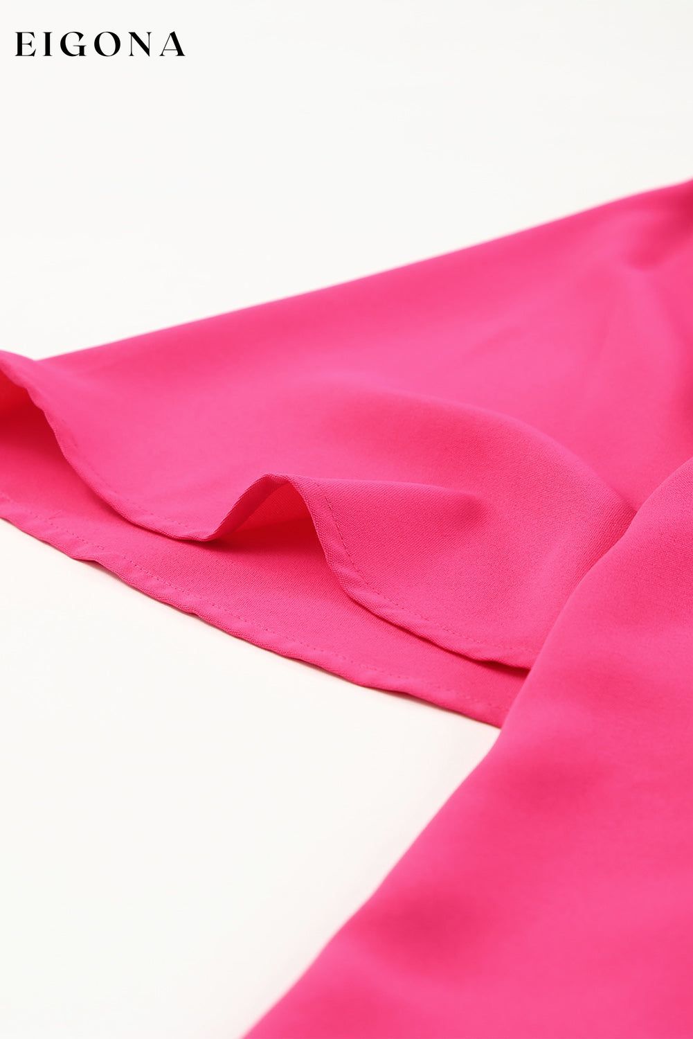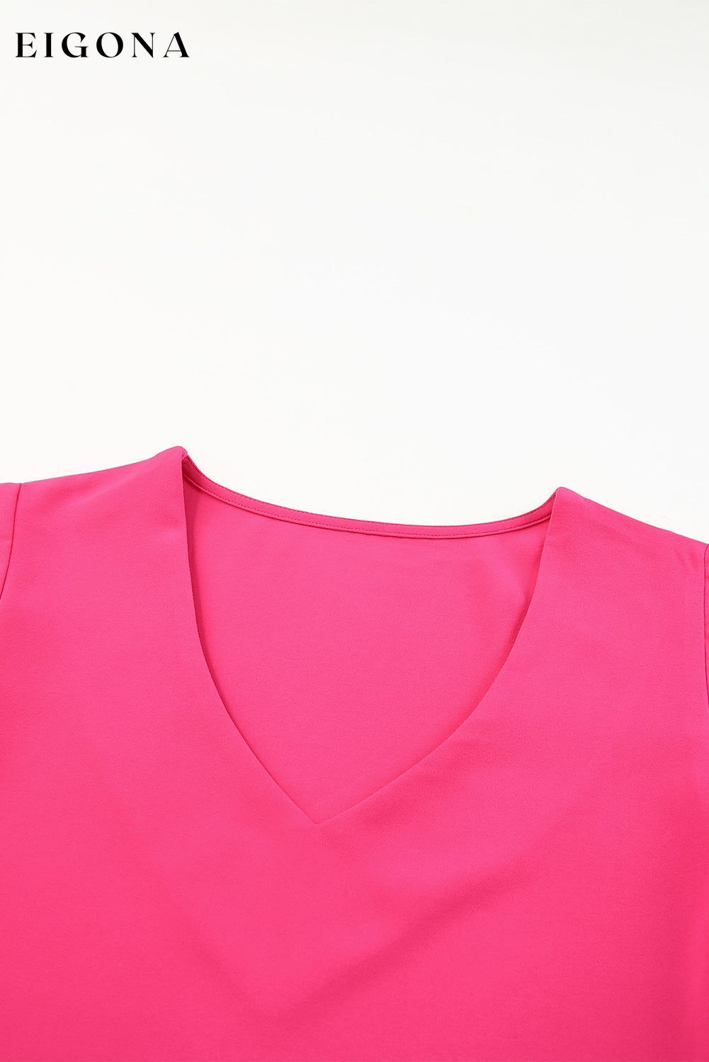 Rose Plain Flounce Bell Sleeve V Neck Blouse