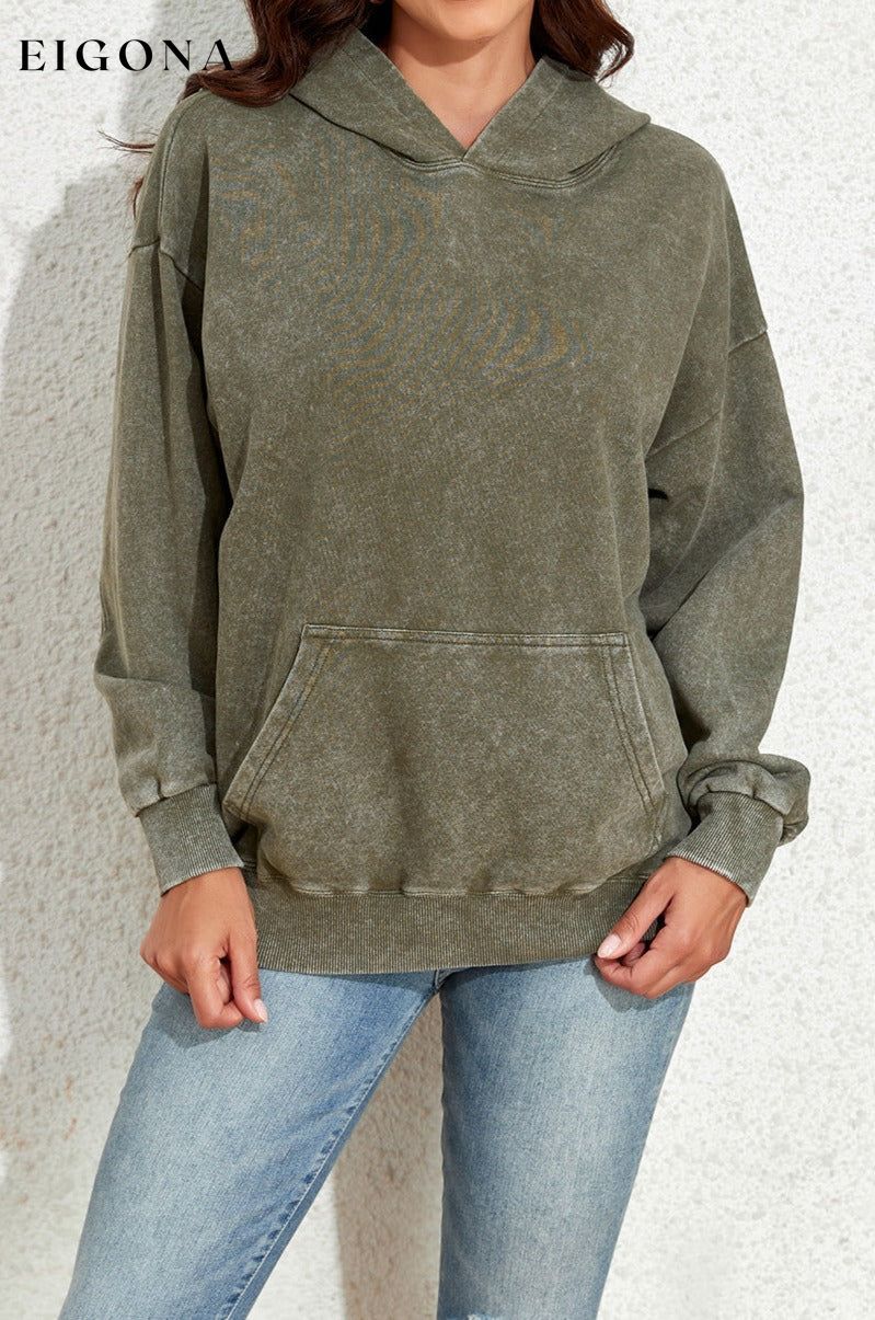 Sage Green Vintage Wash Kangaroo Pocket Hoodie