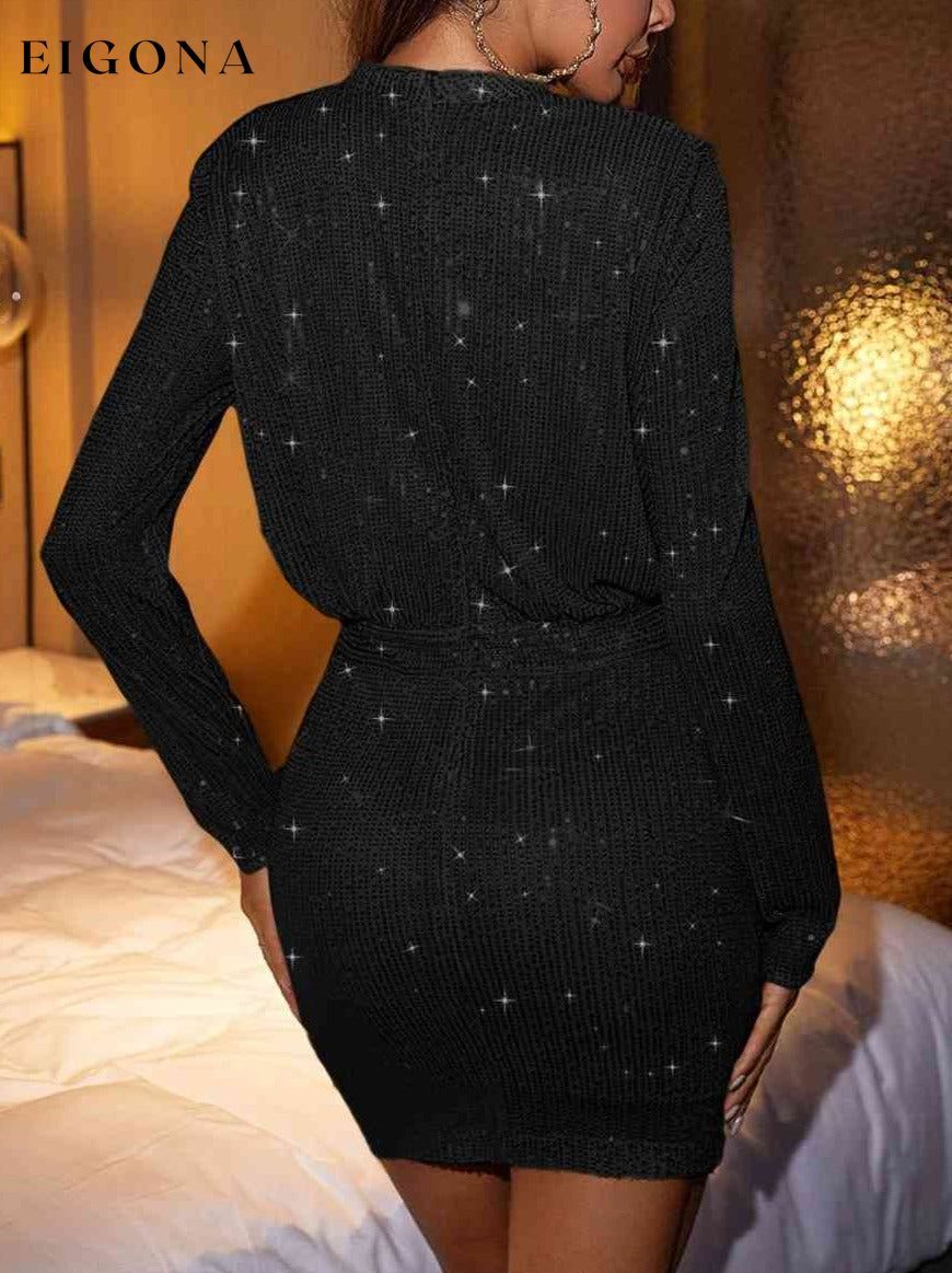 Sequin Mock Neck Long Sleeve Dress