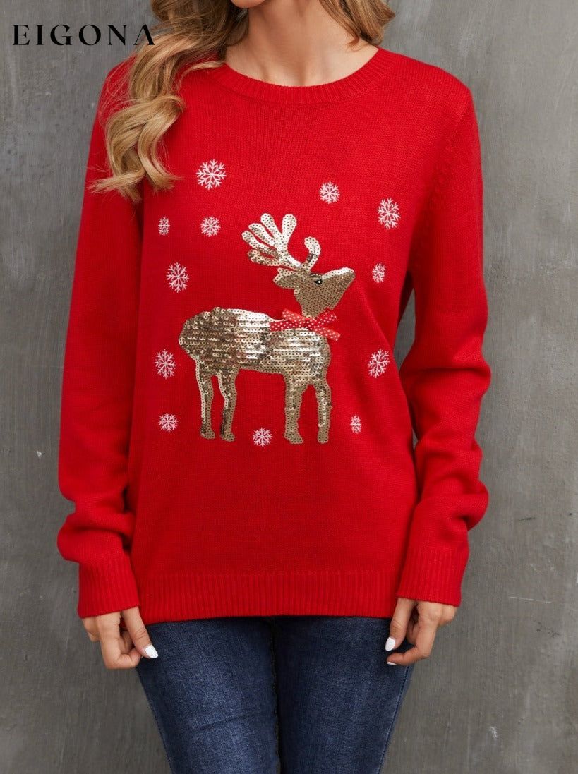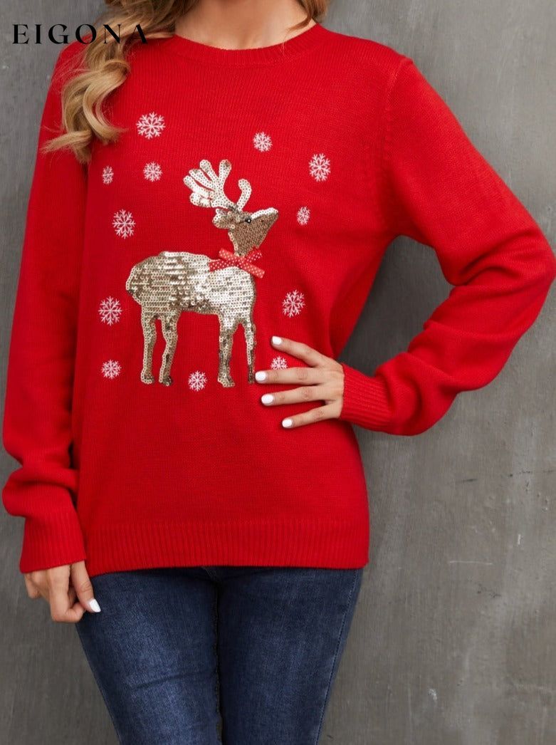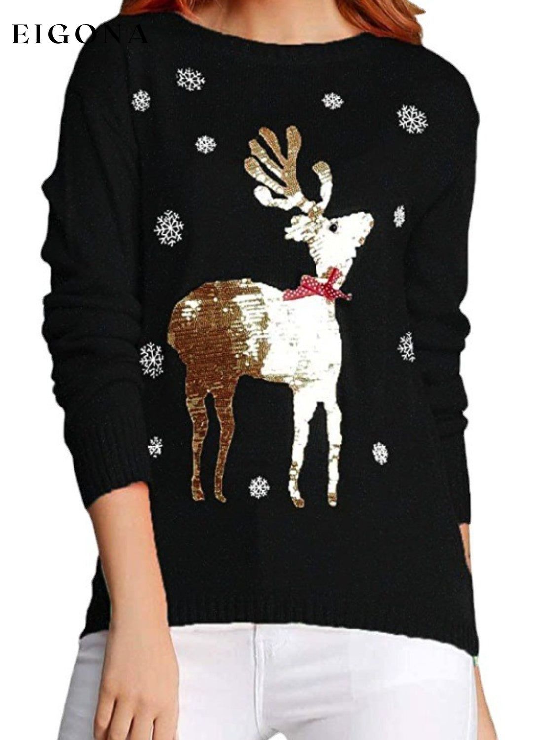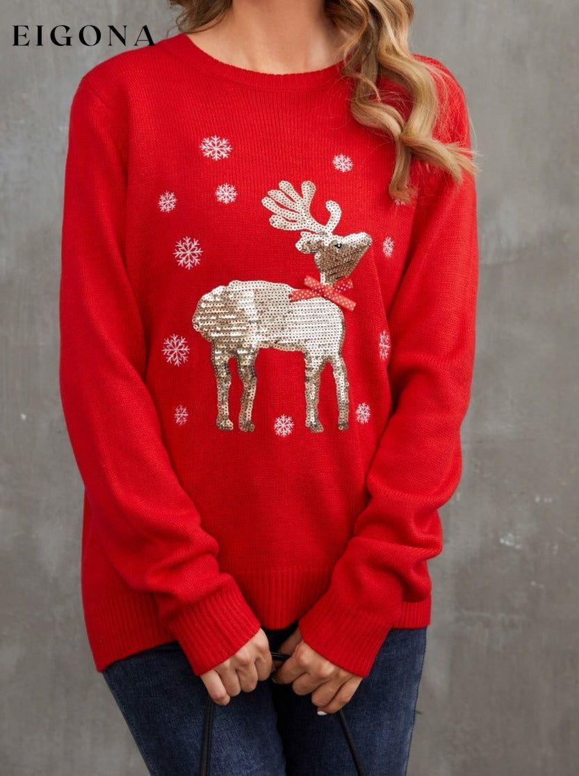 Sequin Reindeer Graphic Ugly Christmas Sweater