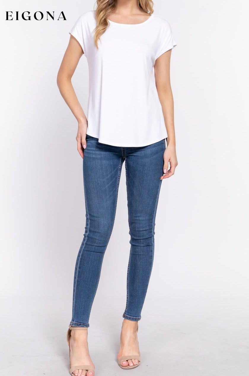 SHORT DOLMAN SLEEVE ROUND NECK RAYON RIB KNIT TOP