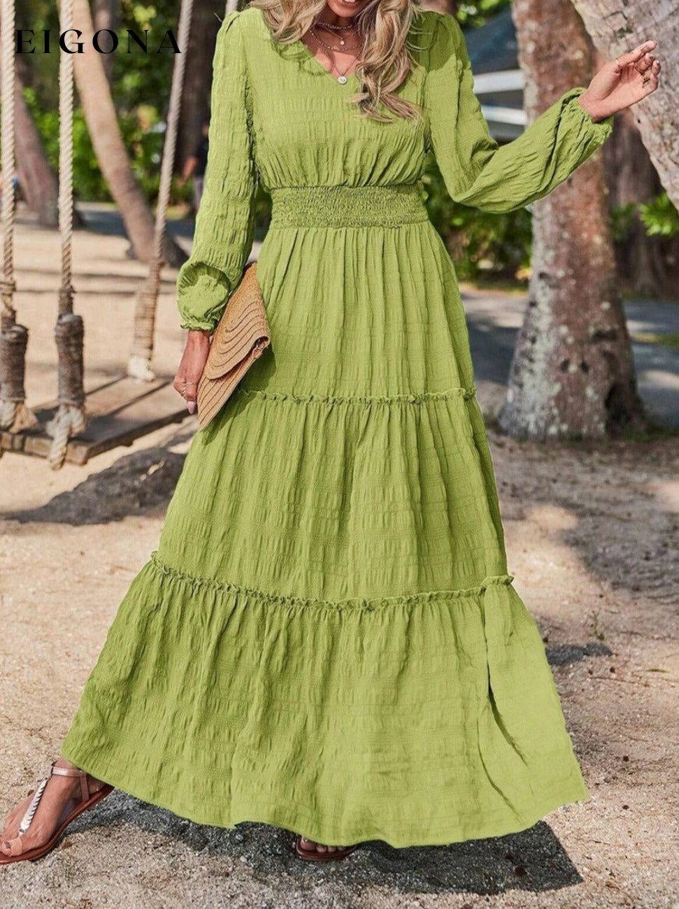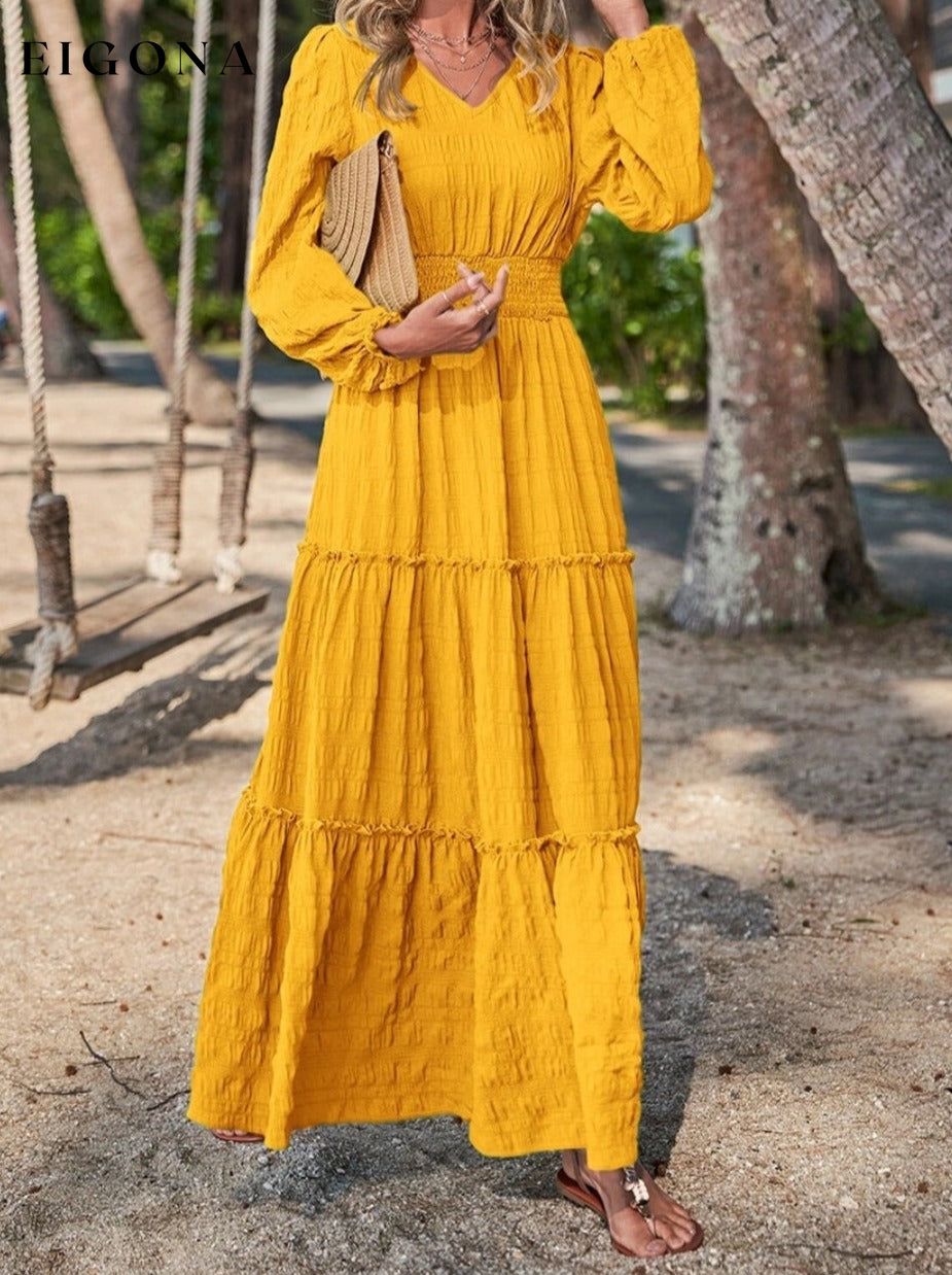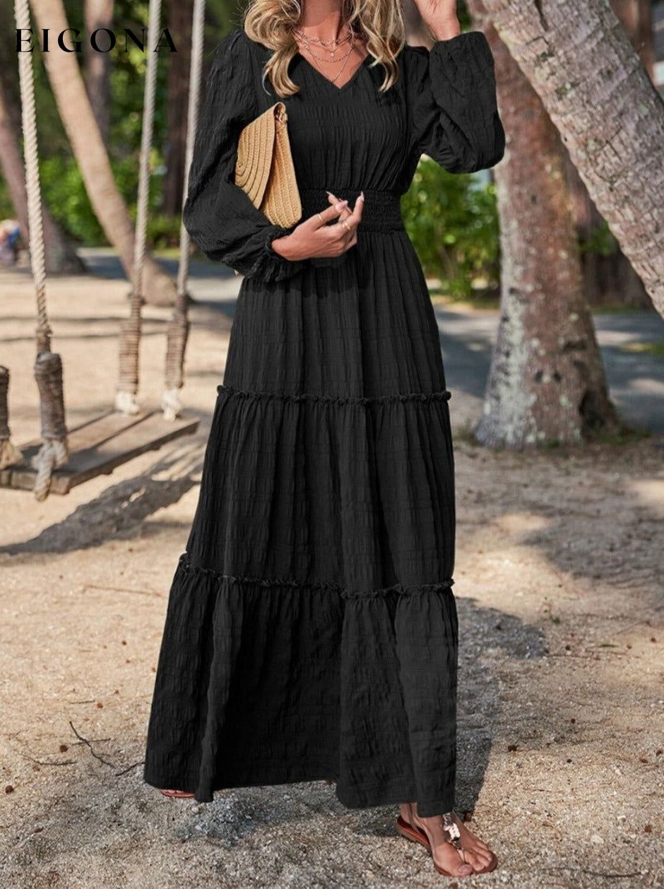 Smocked Waist V-Neck Maxi Dress