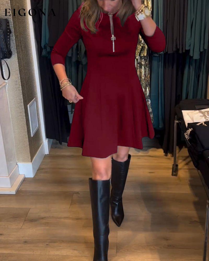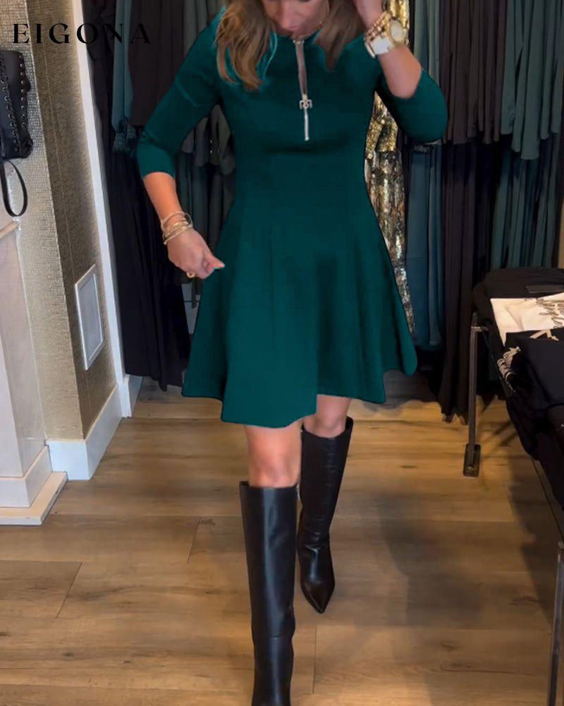Solid color zipper elegant dress