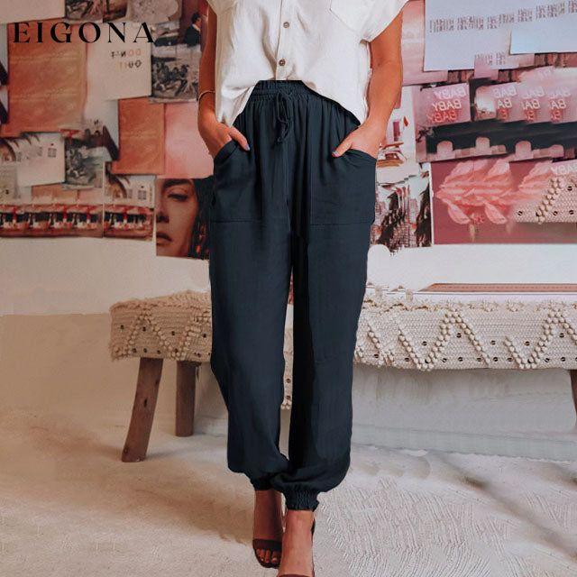 Elevate your casual style with these effortlessly chic solid colour pants, designed with a focus on both comfort and fashion. Crafted from a premium cotton-polyester blend, these loose-fitting pants feature an elegant high waist with a convenient drawstring closure, ensuring a comfortable and personalized fit. The versatile solid colour design makes them easy to pair with a variety of tops, while the elastic ankles add a trendy touch.