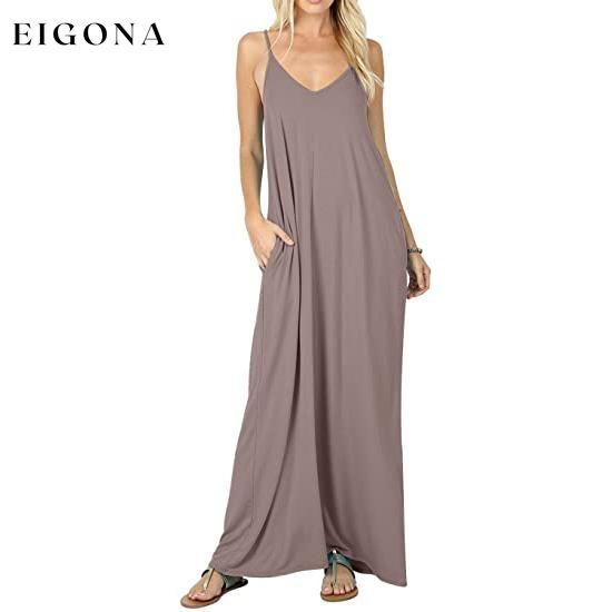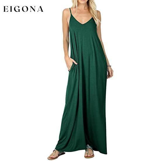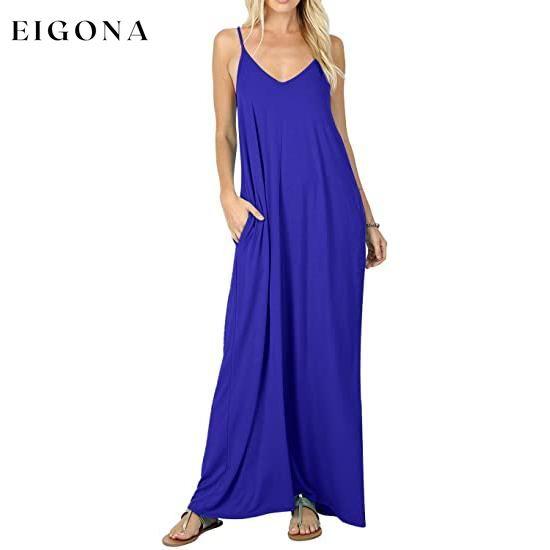 Adjustable strappy, floor length, solid color maxi long dress. This Women's Summer Casual Plain Swing Pocket Loose Beach Spaghetti Strap Maxi Dress is perfect to wear anywhere.