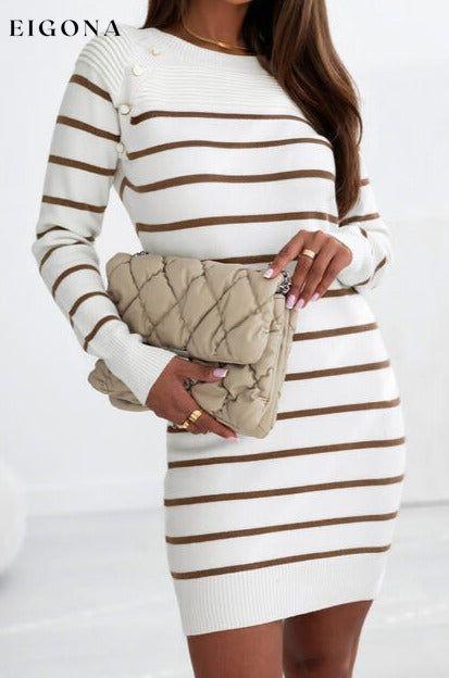Striped Round Neck Long Sleeve Sweater Dress