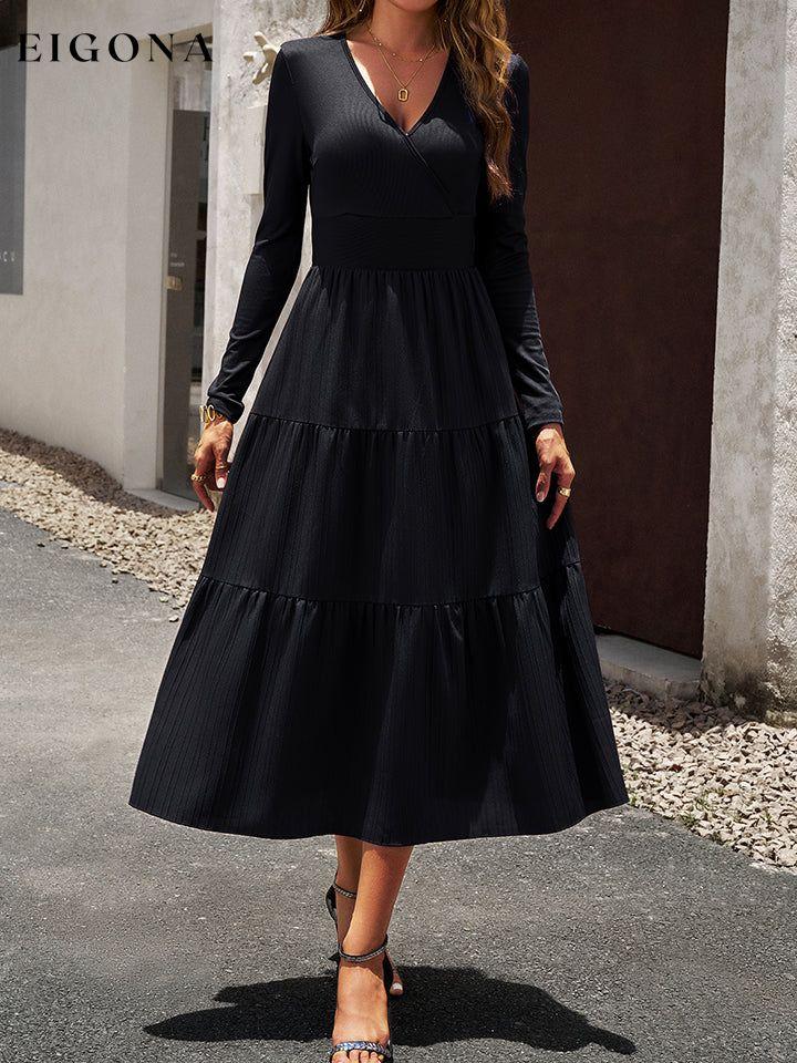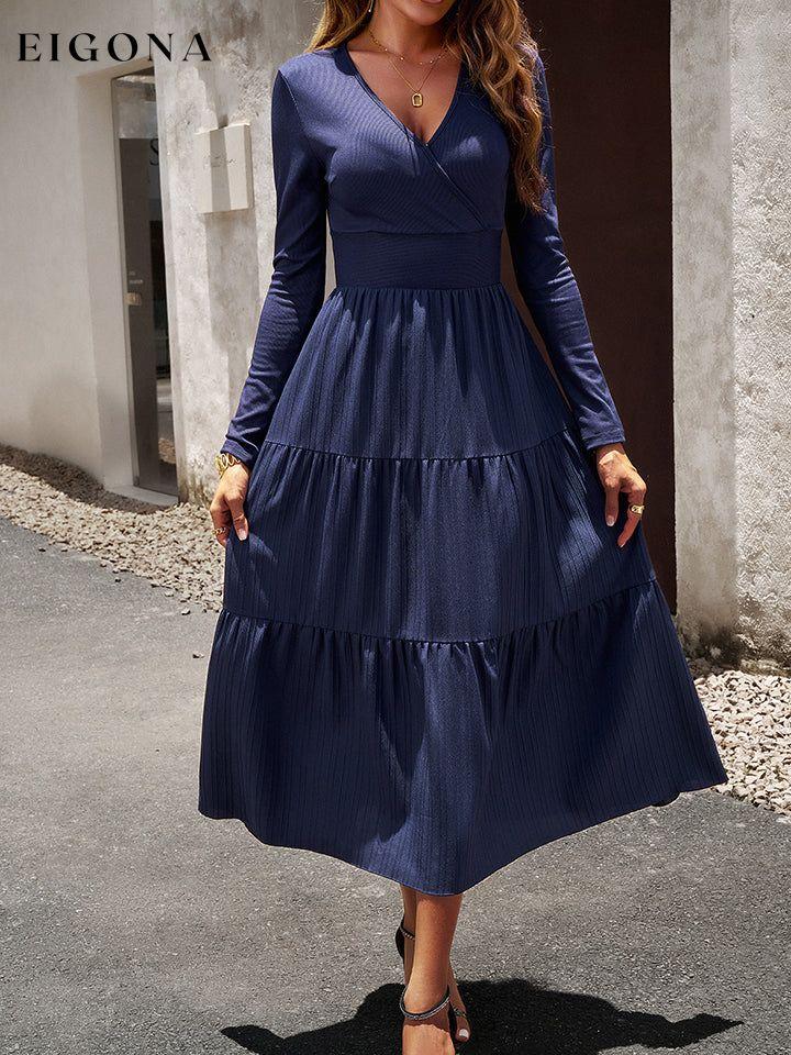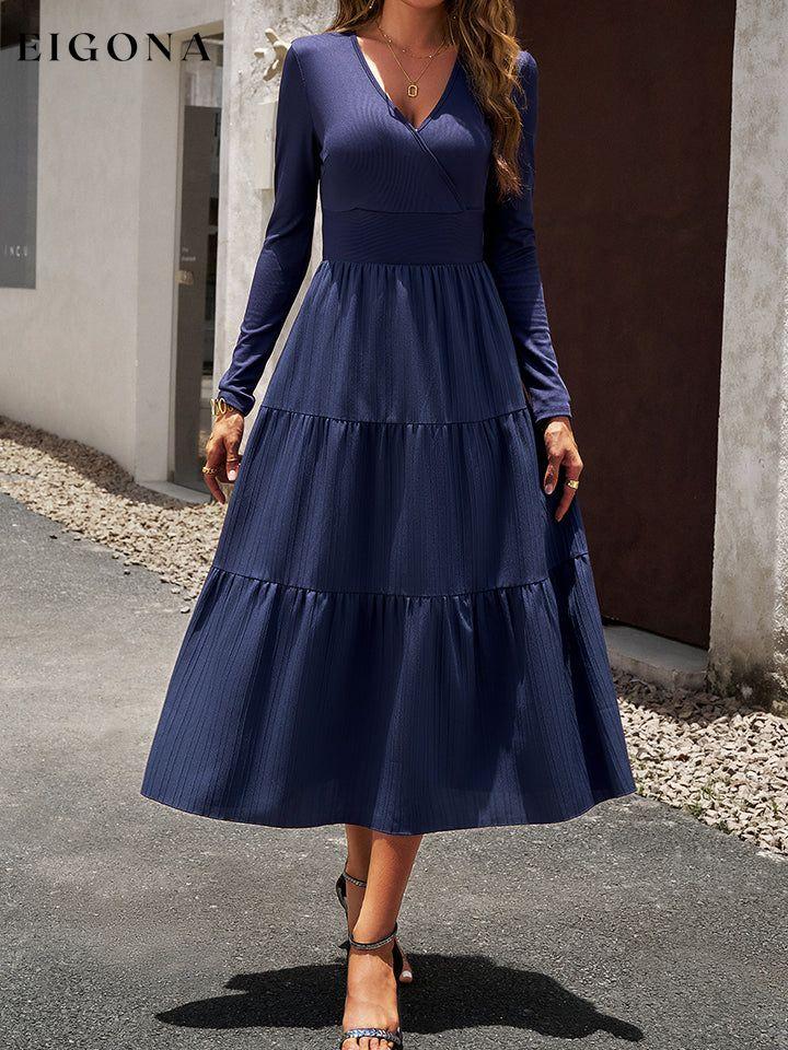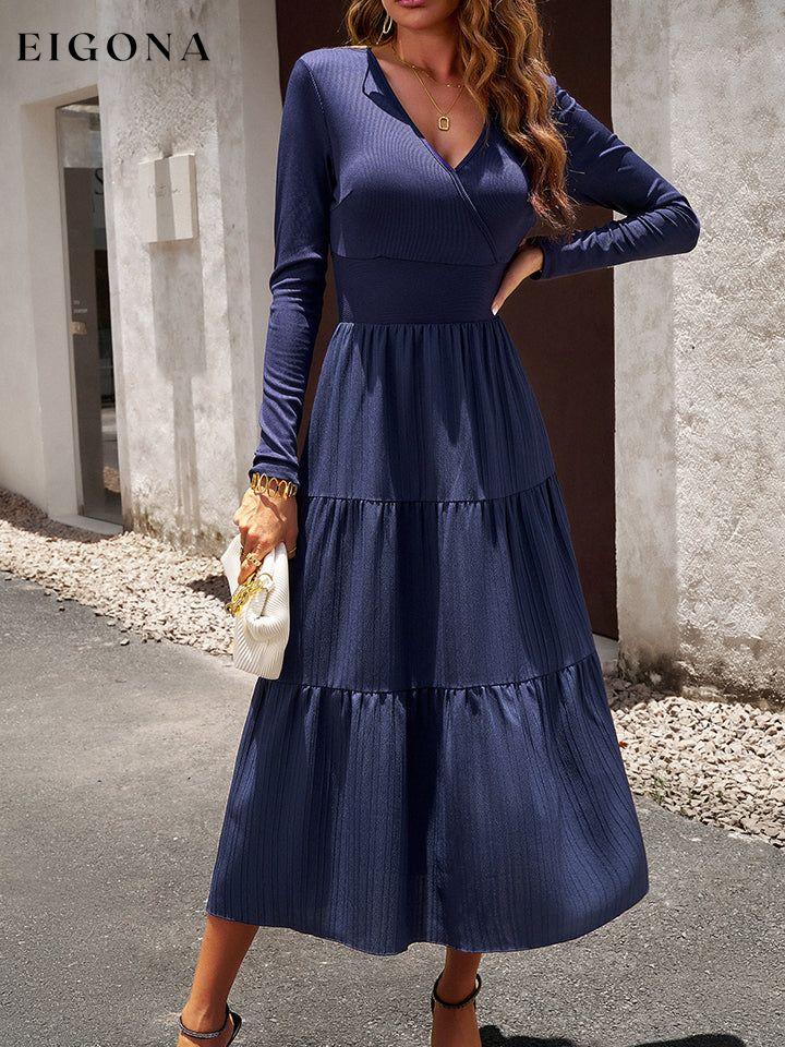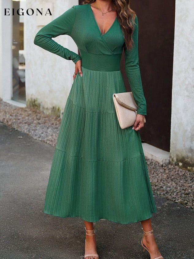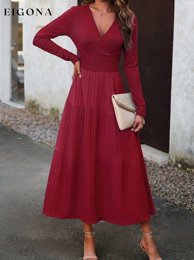 Surplice Neck Long Sleeve Smocked Waist Midi Dress