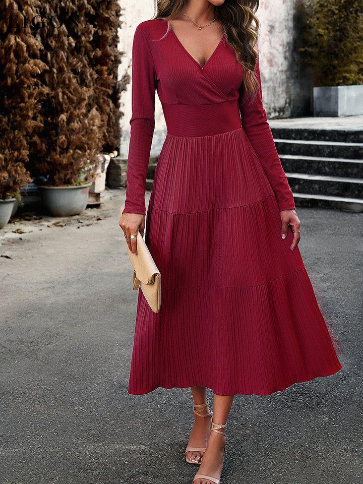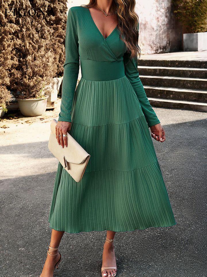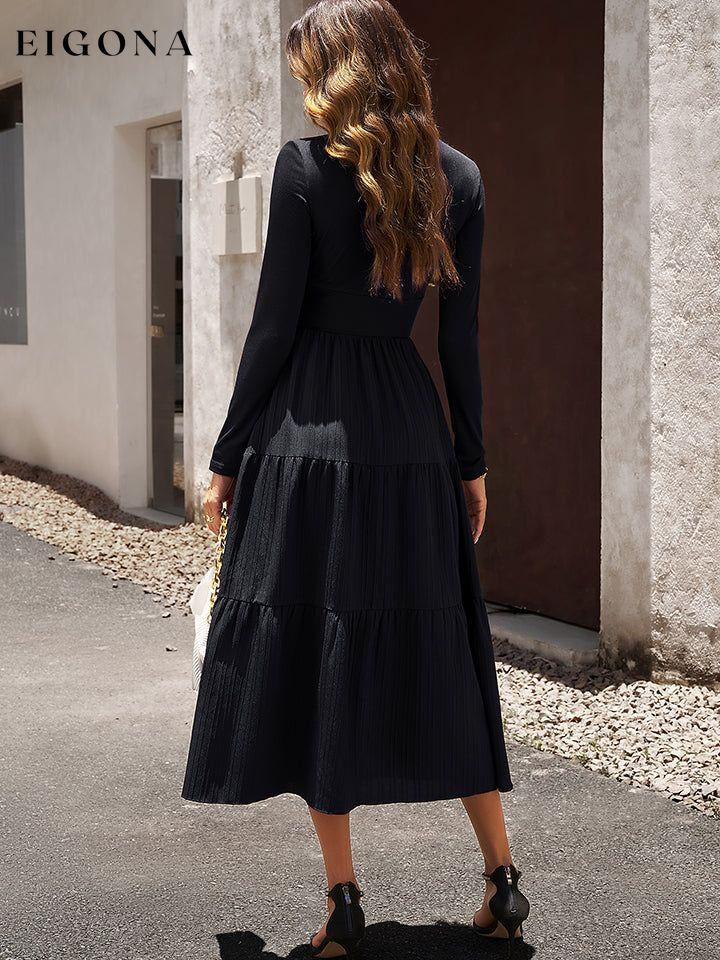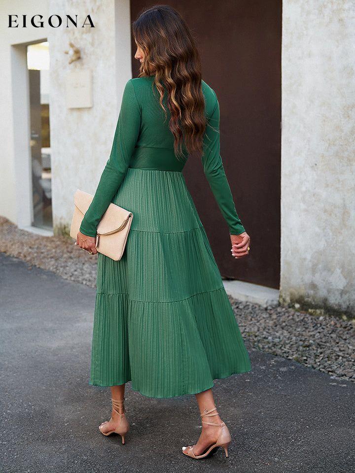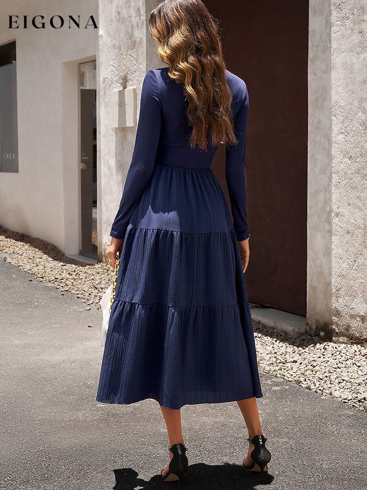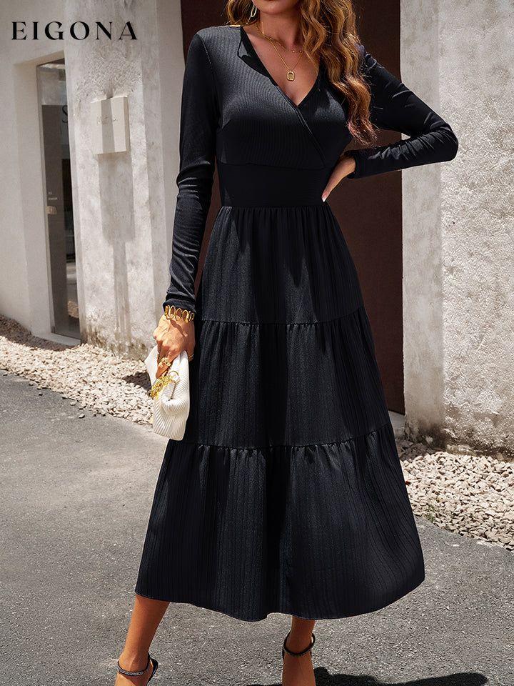 Surplice Neck Long Sleeve Smocked Waist Midi Dress