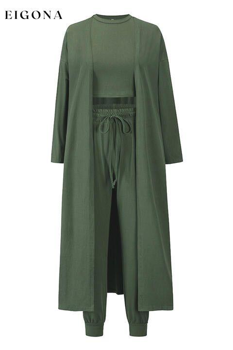 Tank, Pants, and Cardigan Set with Pockets