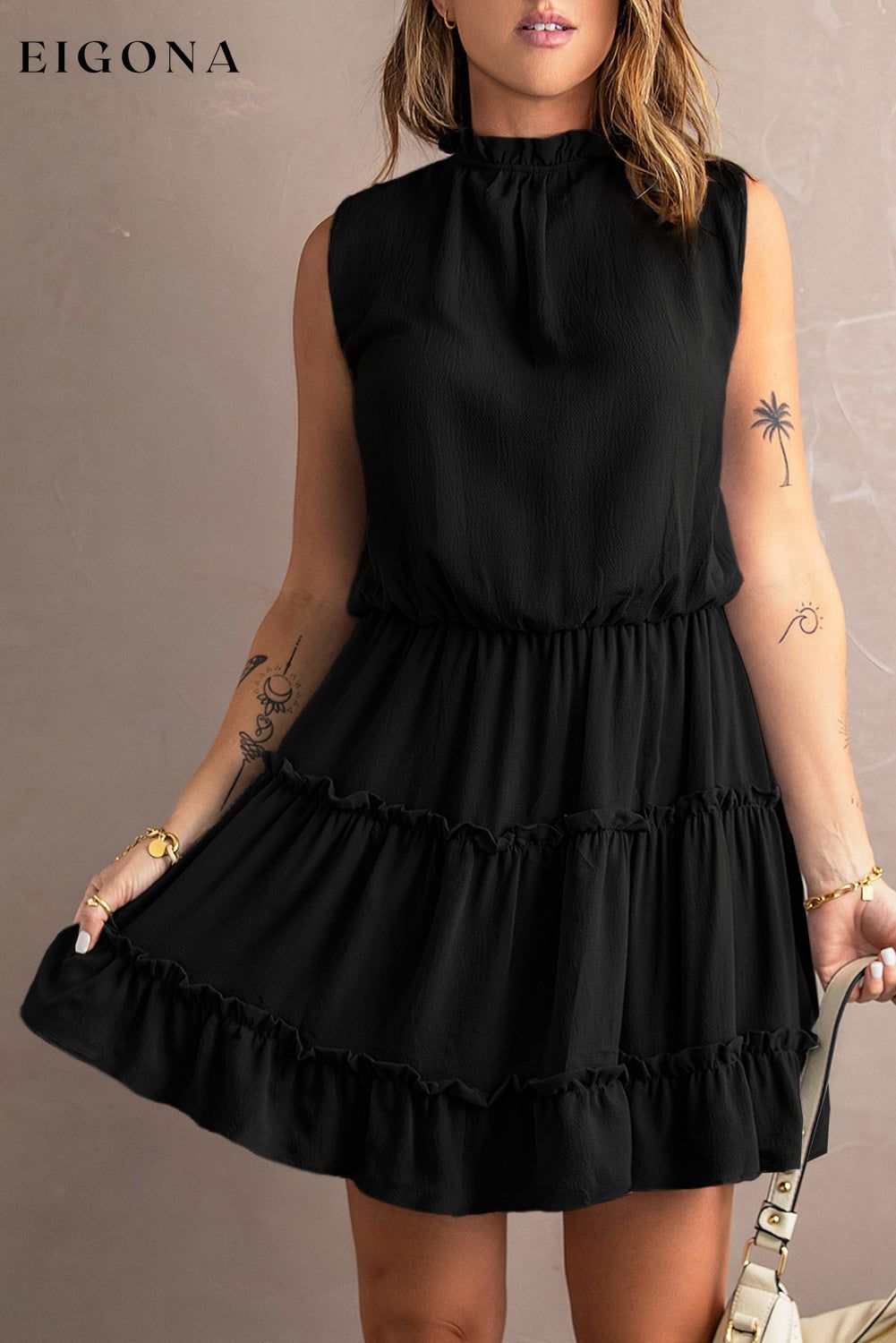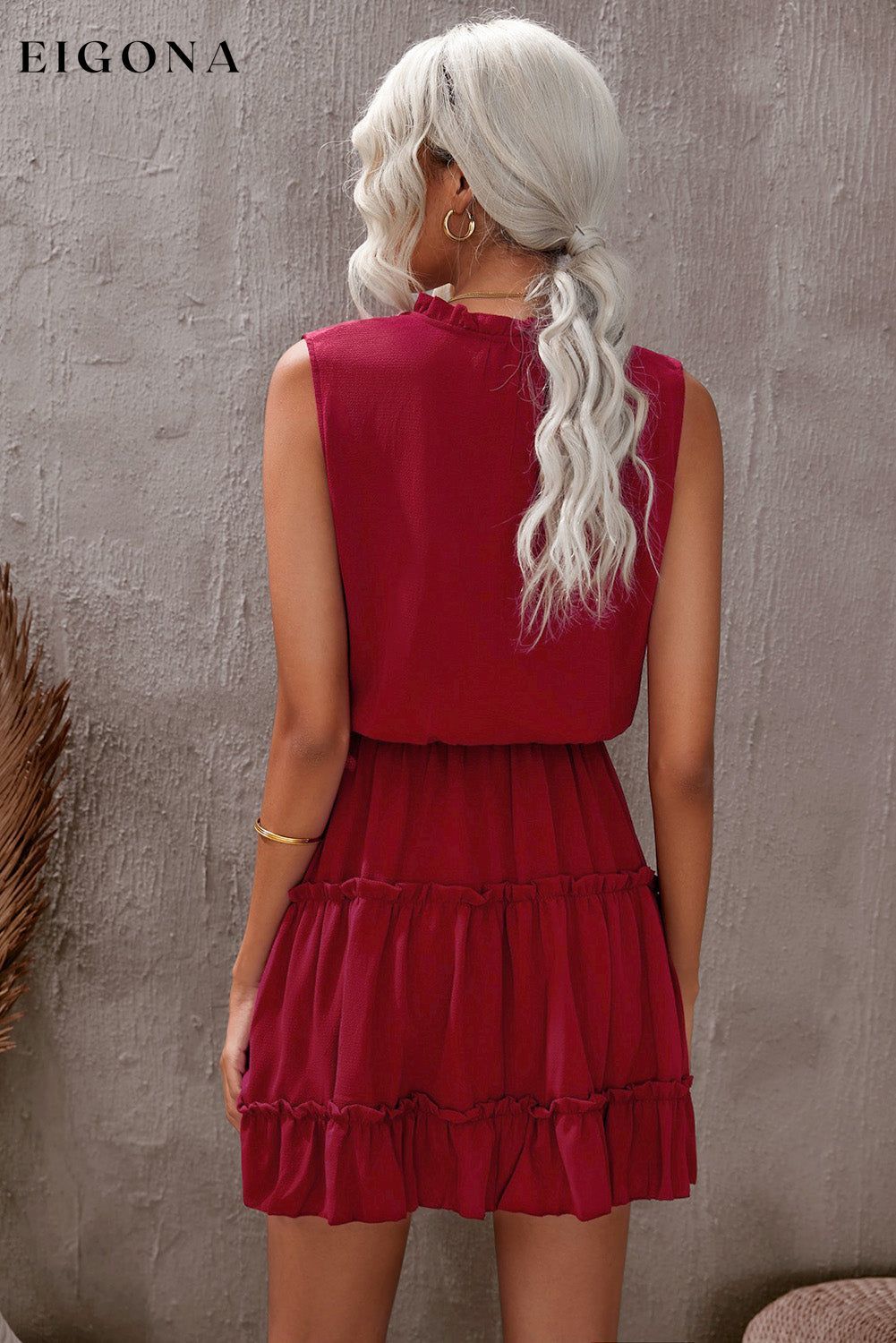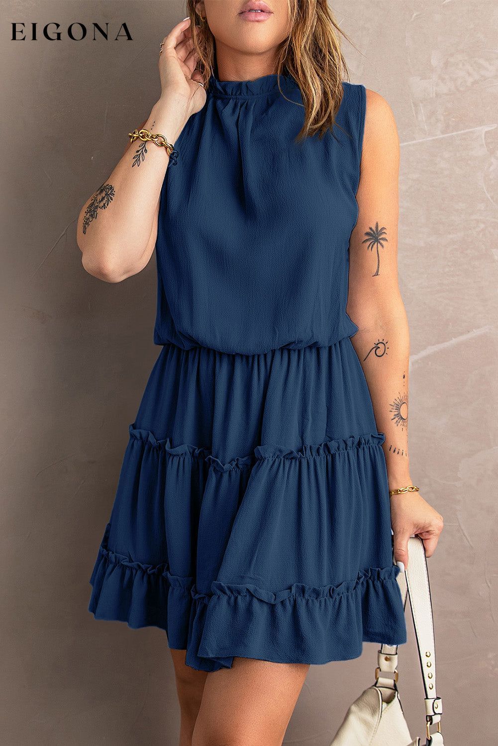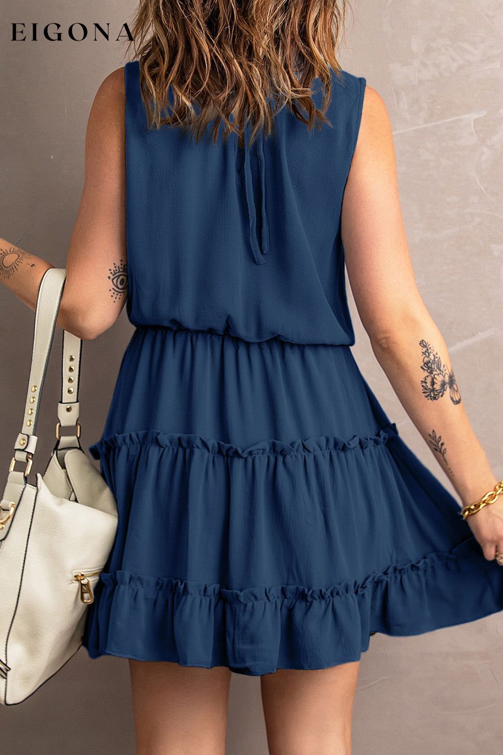 Tie Neck Frill Trim Sleeveless Mini Dress