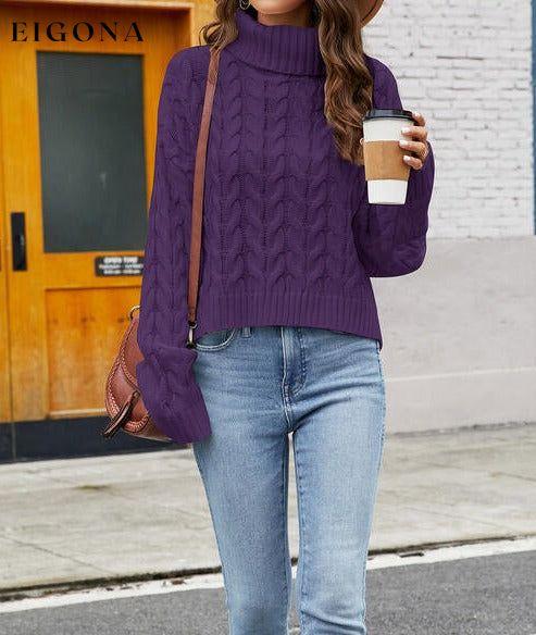 Turtleneck Cable-Knit Long Sleeve Sweater