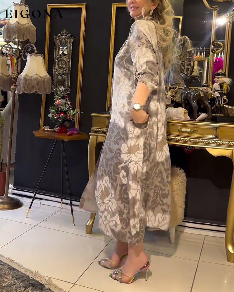 Vintage print lapel button dress