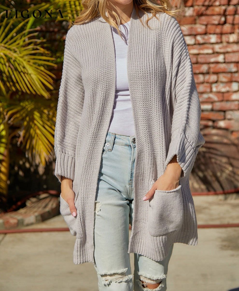 Waffle-Knit Long Sleeve Cardigan with Pocket