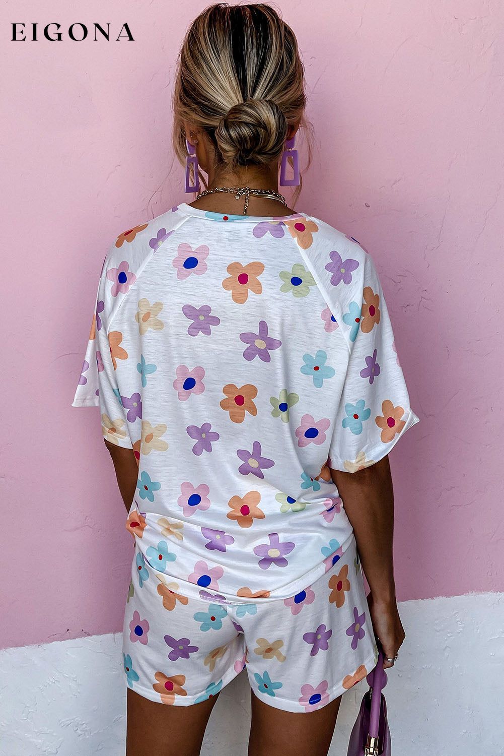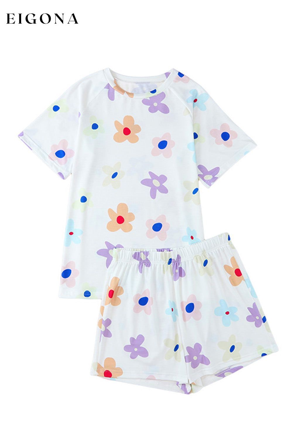 - It includes a loose-fit tee and elastic waist shorts