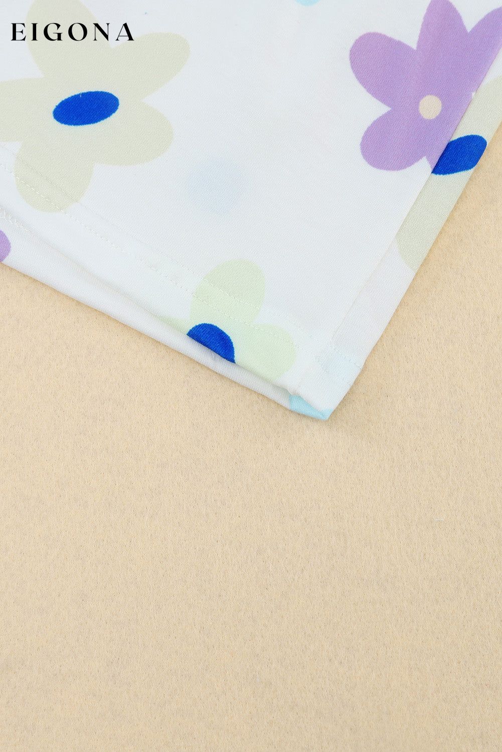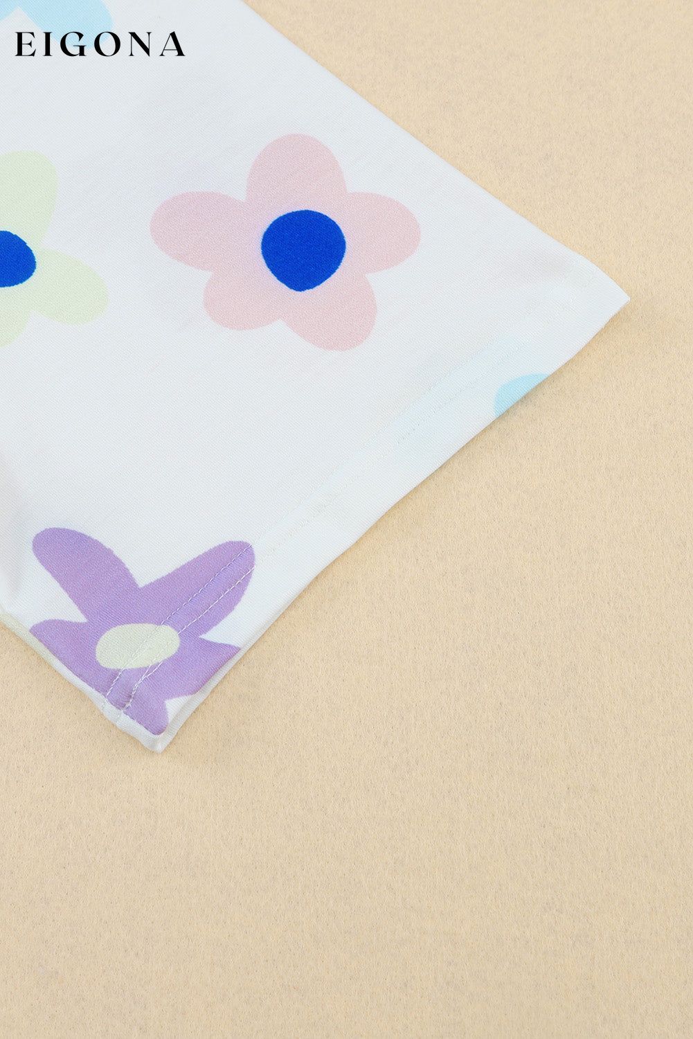 White Flower Print Short Sleeve High Waist Two Piece Shorts Set