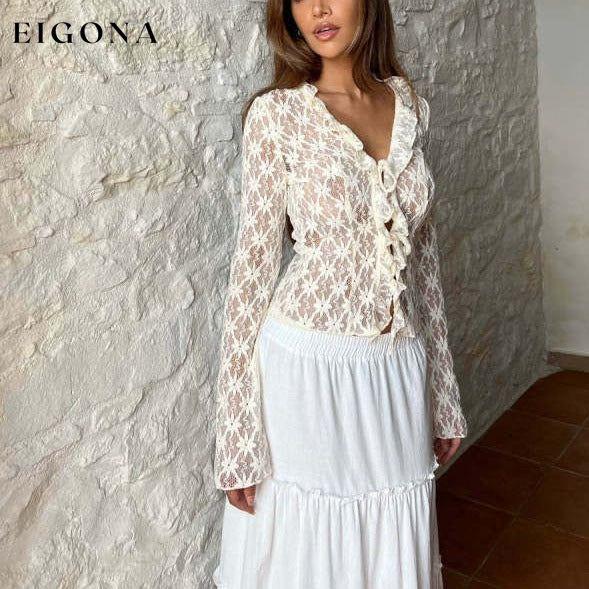 Women's Fashionable womens top, slim solid color mesh hollow see-through lace long-sleeved Top/cardigan/Blouse