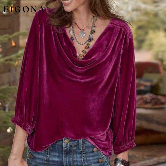 Women's gold velvet three-quarter sleeve elegant plunging collar top, Womens Shirts