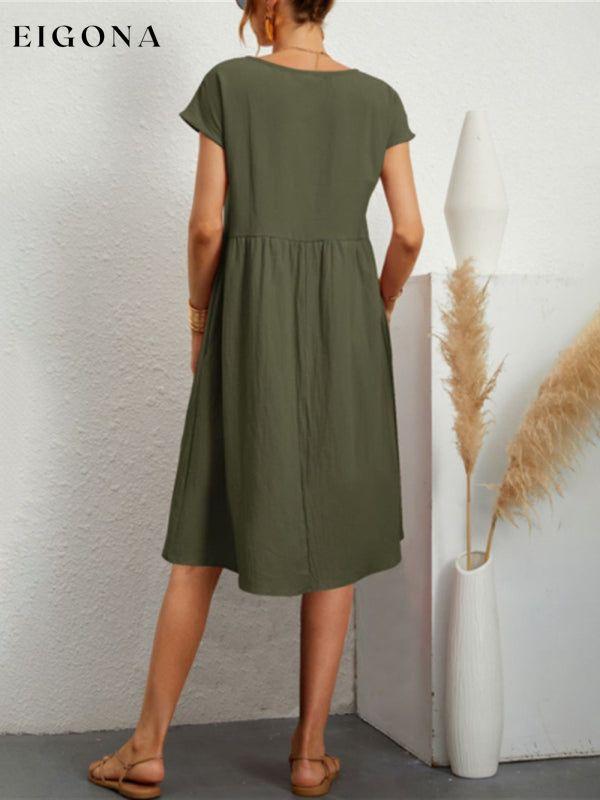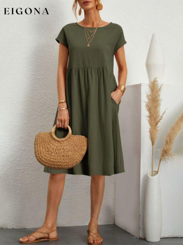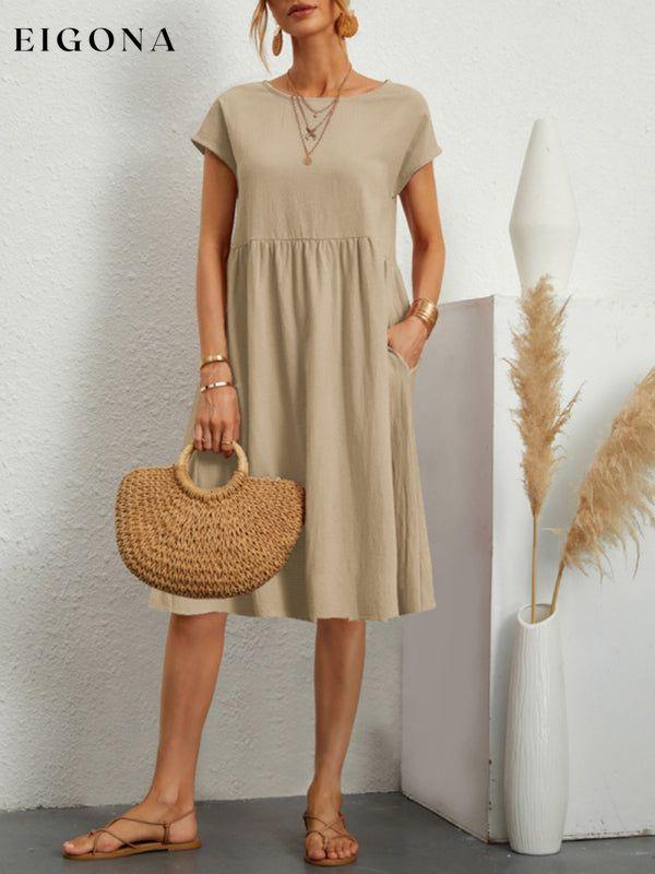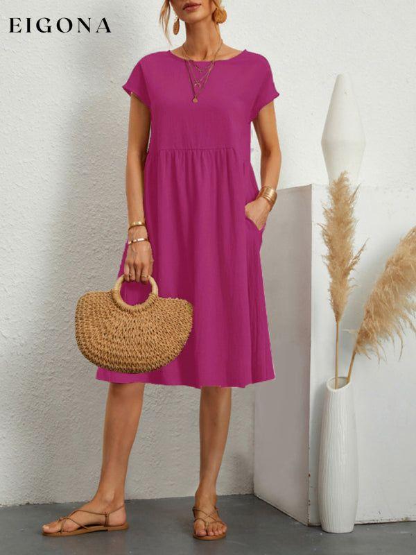 Women's Solid Color Cotton Linen Round Neck A-Line Dress
