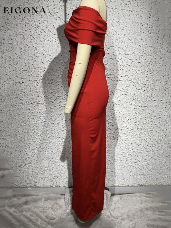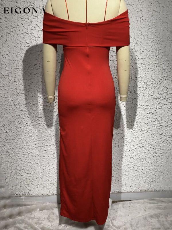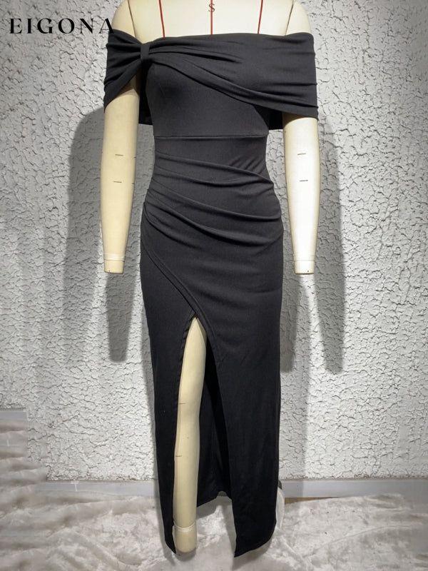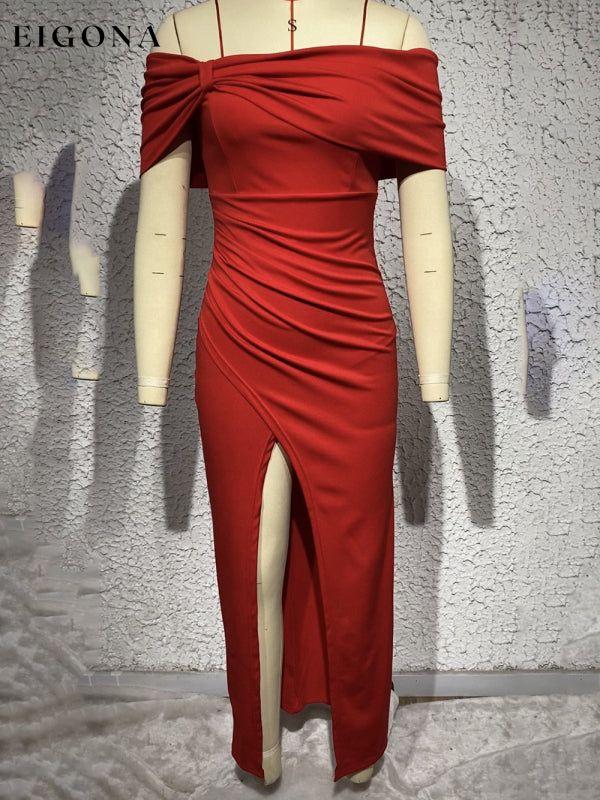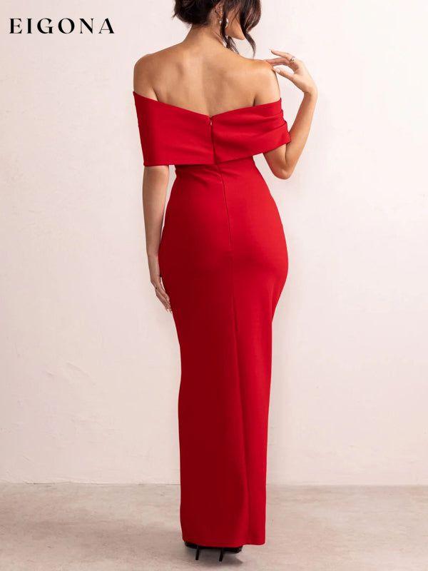 Women's Solid Color Off-the-shoulder Ruffle Slit Maxi Dress