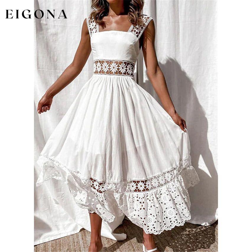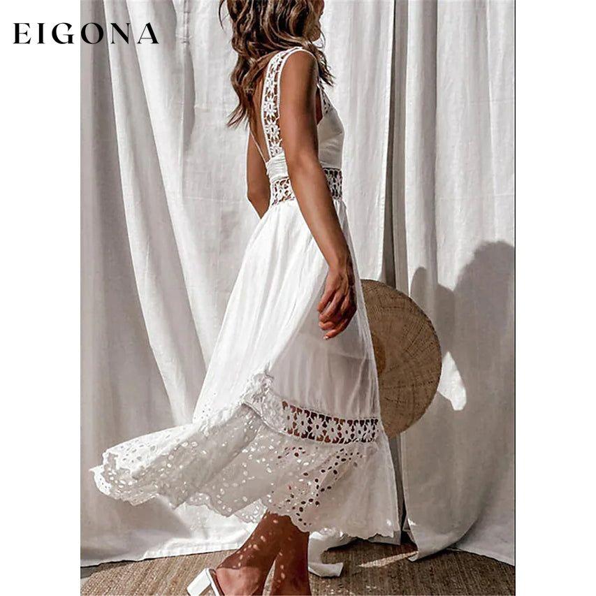 Women's Swing Dress Maxi long Dress White Sleeveless Solid Color Lace Patchwork