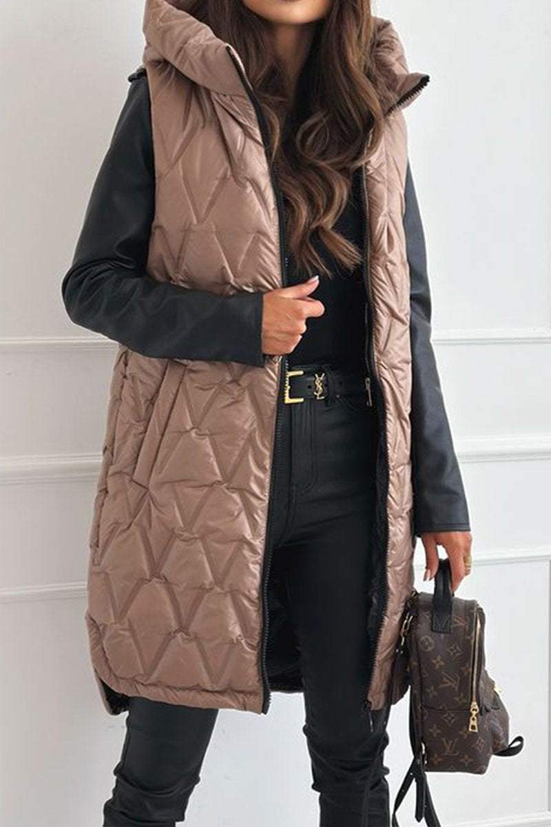 Women's Winter Multi-colored Zippered Hooded Thermal Vest Coat