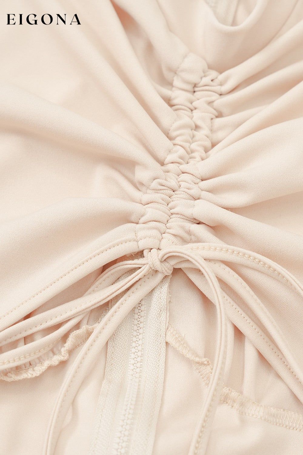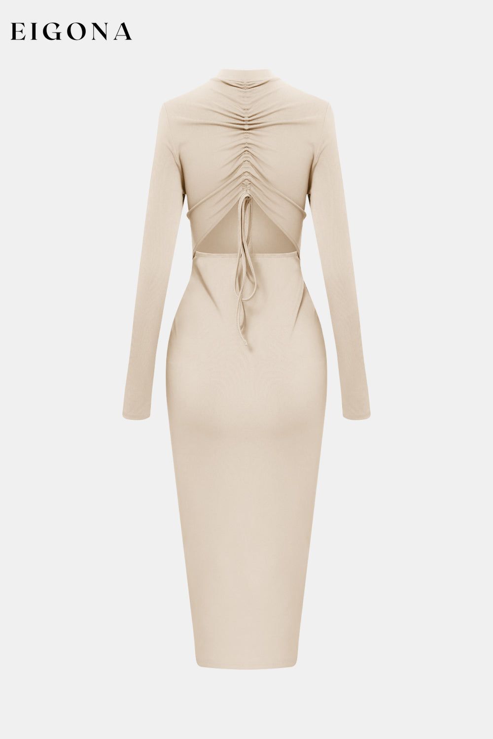 Zip Up Cutout Drawstring Detail Midi Bodycon Dress