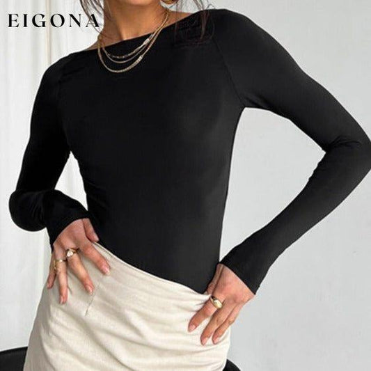 Body de manga comprida, gola redonda sexy apertado manga comprida casual