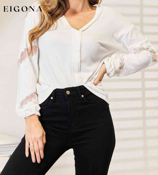 Elegante ombro de fora com decote em V com renda na altura dos ombros, manga comprida com acabamento em fungo doce, blusa de manga comprida, suéter
