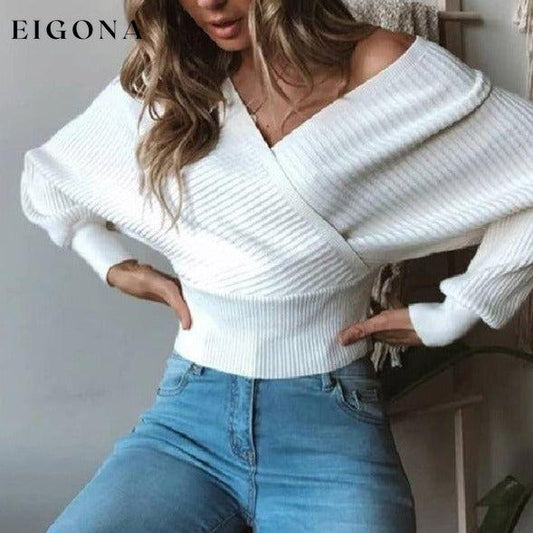 Suéter feminino, suéter de malha de manga comprida com cintura fora do ombro