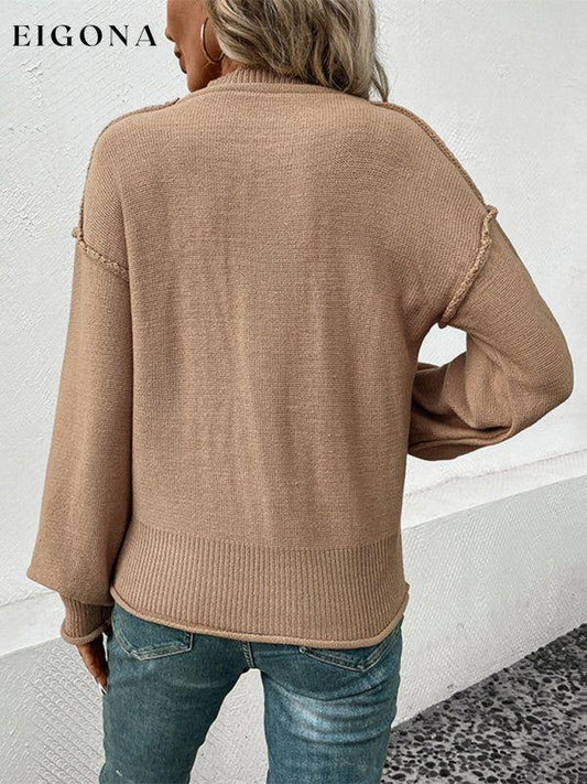 Suéter pulôver solto com contas de pérolas de cor sólida e manga comprida