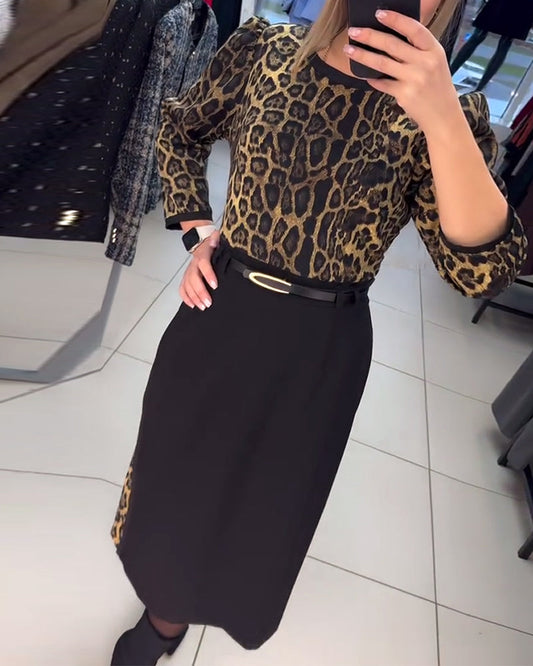 Knitted Sweater With Leopard Print Dress