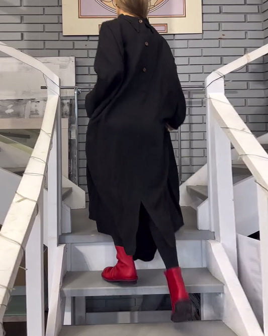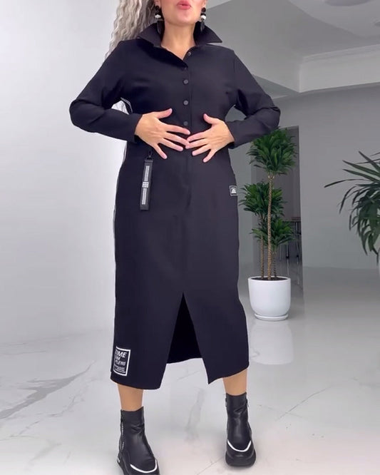 Lapel Button Casual Slit Dress