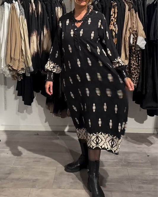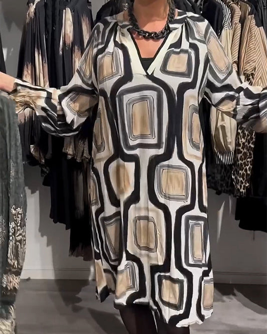 V-Neck Geometric Print Loose Dress