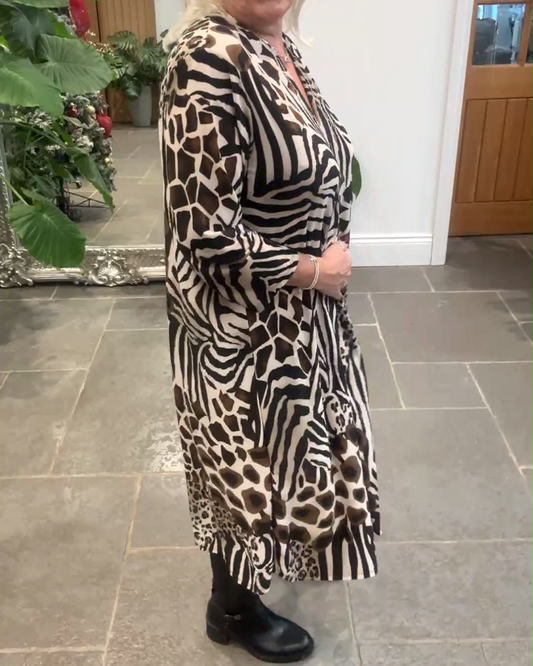 Casual V-Neck Leopard Print Dress