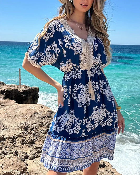 Casual Printed V-Neck Dress