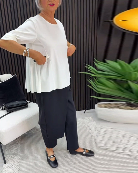 Round Neck Ruffled Hem Hollow Out Blouse