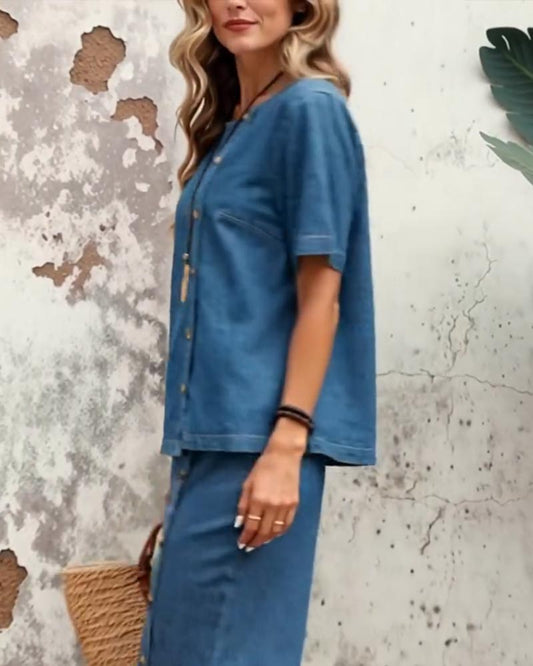 Fashion Side Button Denim Set