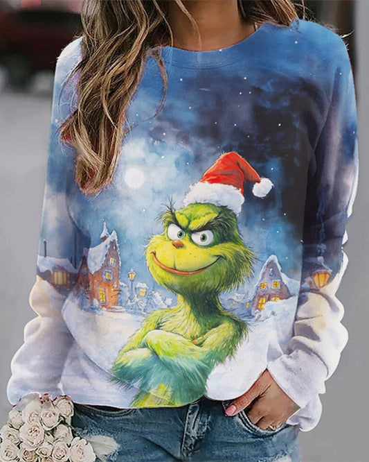 Top casual con stampa geometrica e scollo a giro a maniche lunghe