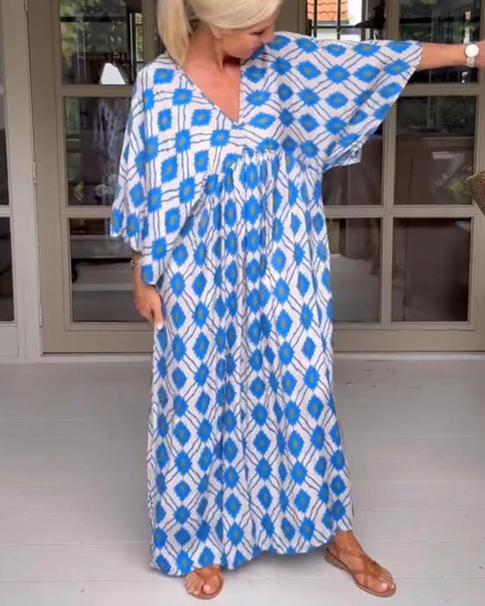 Blusa casual de manga curta com estampa geométrica e decote em V