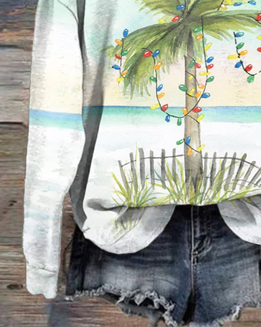 Felpa da donna con stampa di palme acquerello e motivo natalizio retrò della Florida
