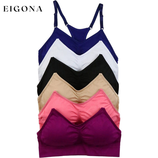 Pacote com 6: Bralette feminino sem fio sem costura com alça espaguete