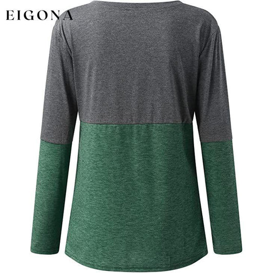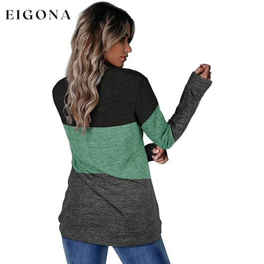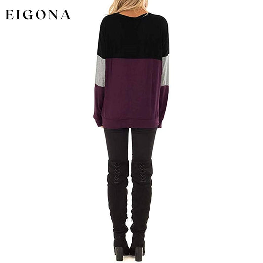 Suéter feminino casual de manga comprida com gola redonda e patchwork