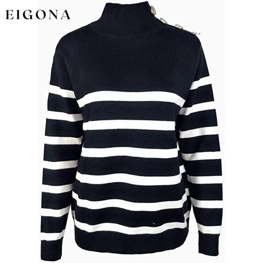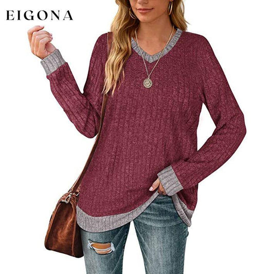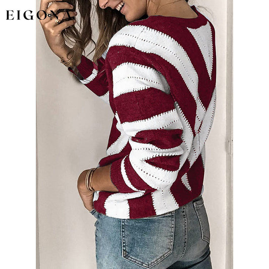 Suéter listrado com gola V em bloco colorido para mulheres, pulôver de malha de manga comprida