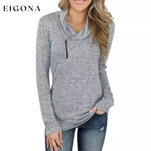 Túnica feminina manga comprida com decote em V tamanho zíper gola pulôver