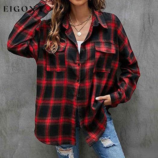 Camisa feminina de flanela com botões e manga comprida xadrez