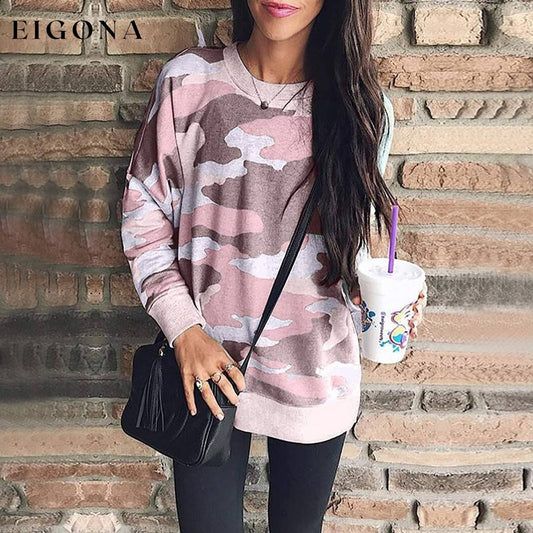 Moletons femininos de manga comprida com estampa camuflada casual leopardo
